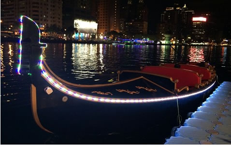 高雄愛河貢多拉船散發(fā)濃濃浪漫風情,3年來已有36對情侶在船上求婚成功。
